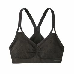 The Patagonia Barely Bra’s slender, nonslip straps won’t dig into your skin, and instead meet at a flattering racerback. An underbust panel offers support for B/C cups. Feminine details like the center gather for shaping and a double fabric front for modesty are nice extra touches. This medium support bra is made of a soft, featherweight, quick-drying nylon/spandex fabric blend with a contemporary geometric jacquard engineered into the fabric to wick moisture. Internal cup pocket allows for pads/inserts (cups included).
