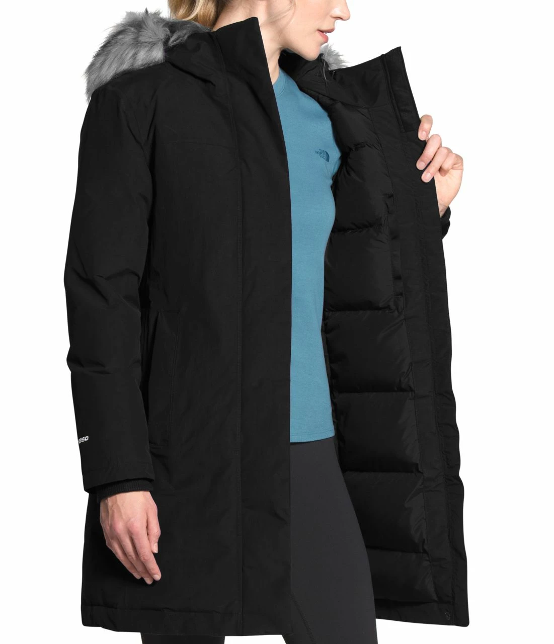 Featuring waterproof, breathable DryVentâ„¢ 2L shell fabric, the thigh-length Arctic Parka is insulated with 550-fill down and 150g Heatseekerâ„¢ Eco for a flattering fit and a great warmth-to-weight ratio. Removable faux fur ruff.